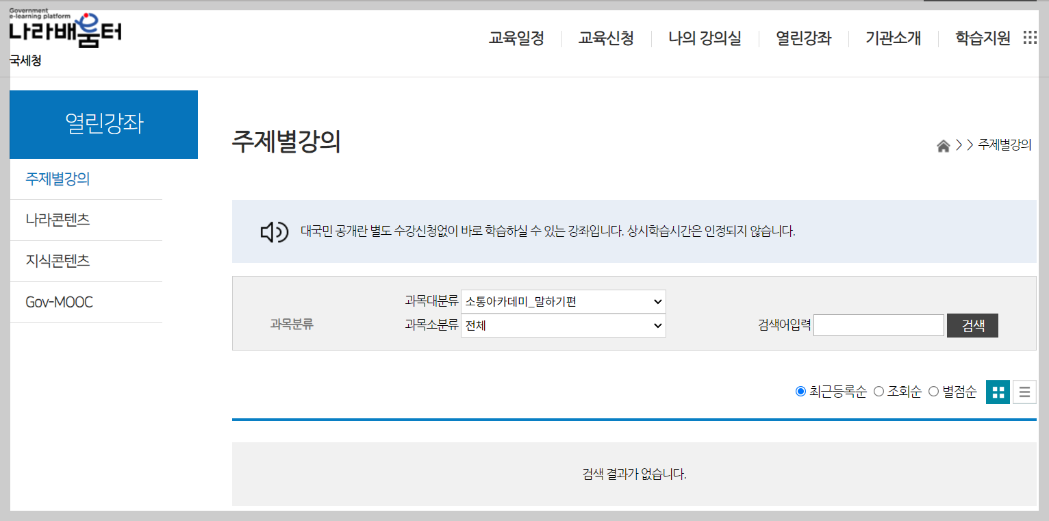 국세청 나라배움터는 공무원뿐만 아니라 일반인과 외국인까지 폭넓게 이용할 수 있는 이러닝 플랫폼으로, 국가공무원인재개발원에서 운영하고 있습니다. 이 플랫폼은 다양한 교육 콘텐츠를 제공하여 사용자들이 자신의 업무 능력을 향상하거나 새로운 지식을 습득할 수 있도록 지원합니다. 특히 공무원과 관련된 직무 교육뿐만 아니라 일반인도 쉽게 접근할 수 있는 양질의 교육 자료들이 많아서, 배우고 싶은 분야가 있다면 언제든지 무료로 수강할 수 있는 점이 큰 매력입니다.