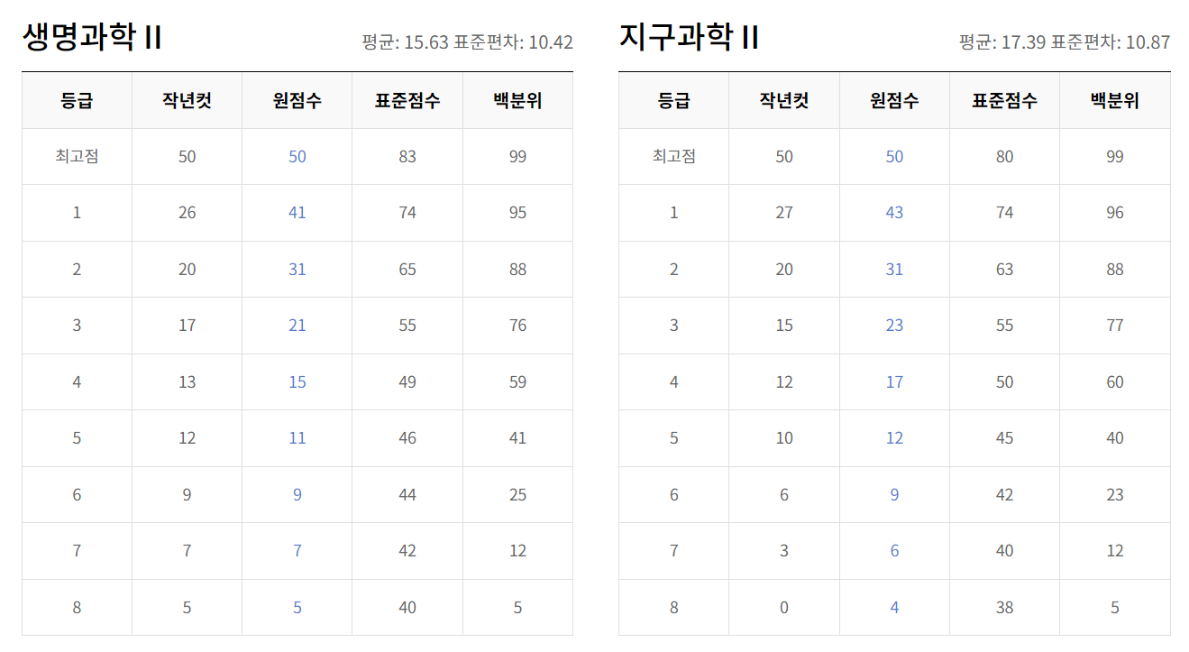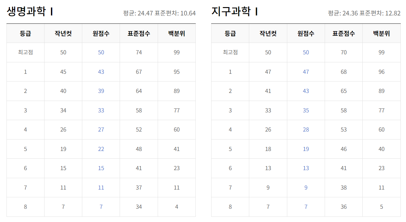 - EBS 제공 자료 : EBS에서는 예상 등급컷을 제공하며, 이는 실제와 1~3점의 차이를 보일 수 있습니다. 등급컷에는 표준점수와 N수생 보정점수도 포함되어 있습니다.